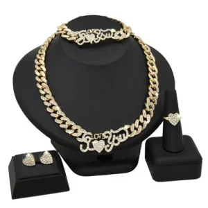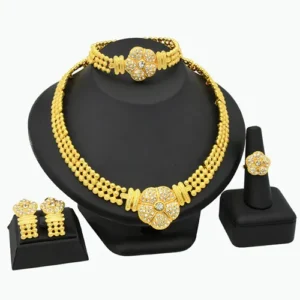 For those seeking a fusion of African elegance and contemporary style, our gold-plated Africa Dubai wedding party necklace jewelry set is an exquisite choice. Crafted with meticulous attention to detail, this set combines the opulence of gold plating with the cultural motifs and artistry of Africa. With its intricate design and radiant appeal, this jewelry set effortlessly elevates your wedding ensemble, making you the center of attention on your special day.