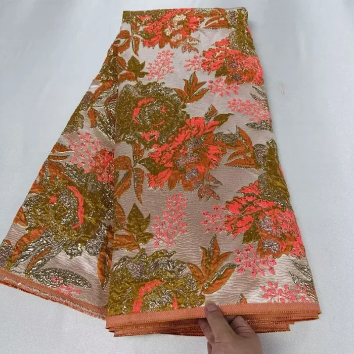 Jacquard fabric  It is a medium-heavy weight fabric that features an elegant look with a rich and rough texture.