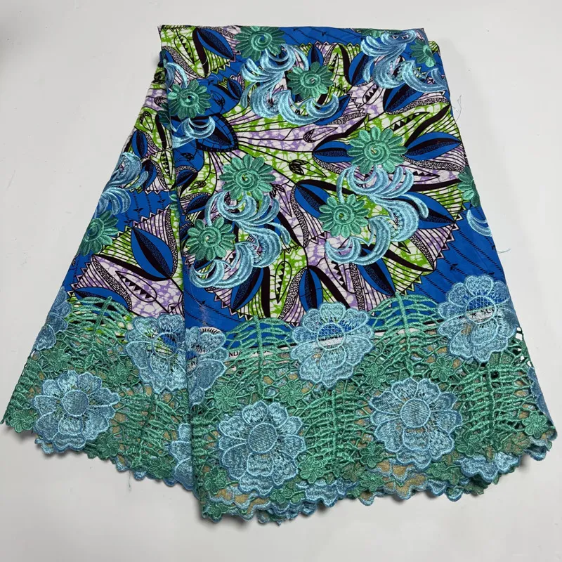 6 yards african wax print lace fabric for Nigeria tradtional wedding dress fabric