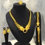 Indulge in luxury with this exquisite Necklace Set, perfect for wedding parties. With its opulent design and superior craftsmanship, this set features a necklace, bracelet, earrings, and ring. Make a lasting impression and elevate your style with this luxurious jewelry set.”