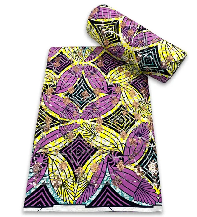 African Sequins Embroidery Wax Fabric 6yards WQ1003