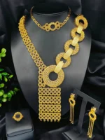 Indulge in luxury with this exquisite Necklace Set, perfect for wedding parties. With its opulent design and superior craftsmanship, this set features a necklace, bracelet, earrings, and ring. Make a lasting impression and elevate your style with this luxurious jewelry set.”