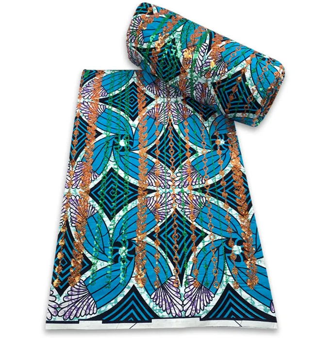 Sequins ankara wax print fabric 6 yards WQ1004